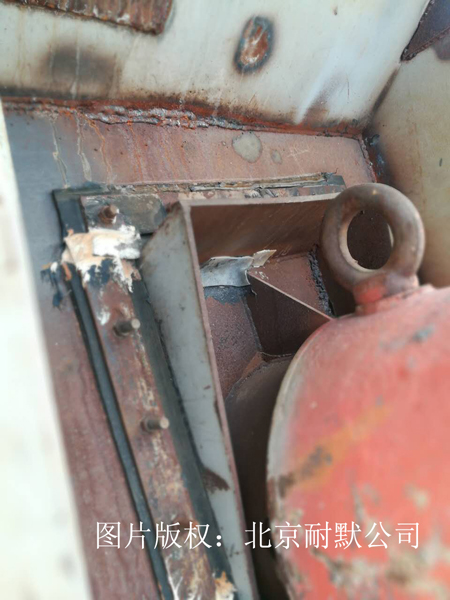 圖(1)立磨外殼體已經(jīng)被粉體吹漏